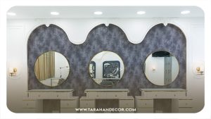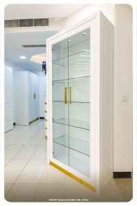 ▪️واقع در نیاوران ▪️متریال استفاده شده: mdf خام واناچای، استیل ۳۱۶ به رنگ طلایی، رنگ پلی اورتان اسپانیایی، وآینه های استفاده شده ۶ میل اَردَکان یزد می باشد